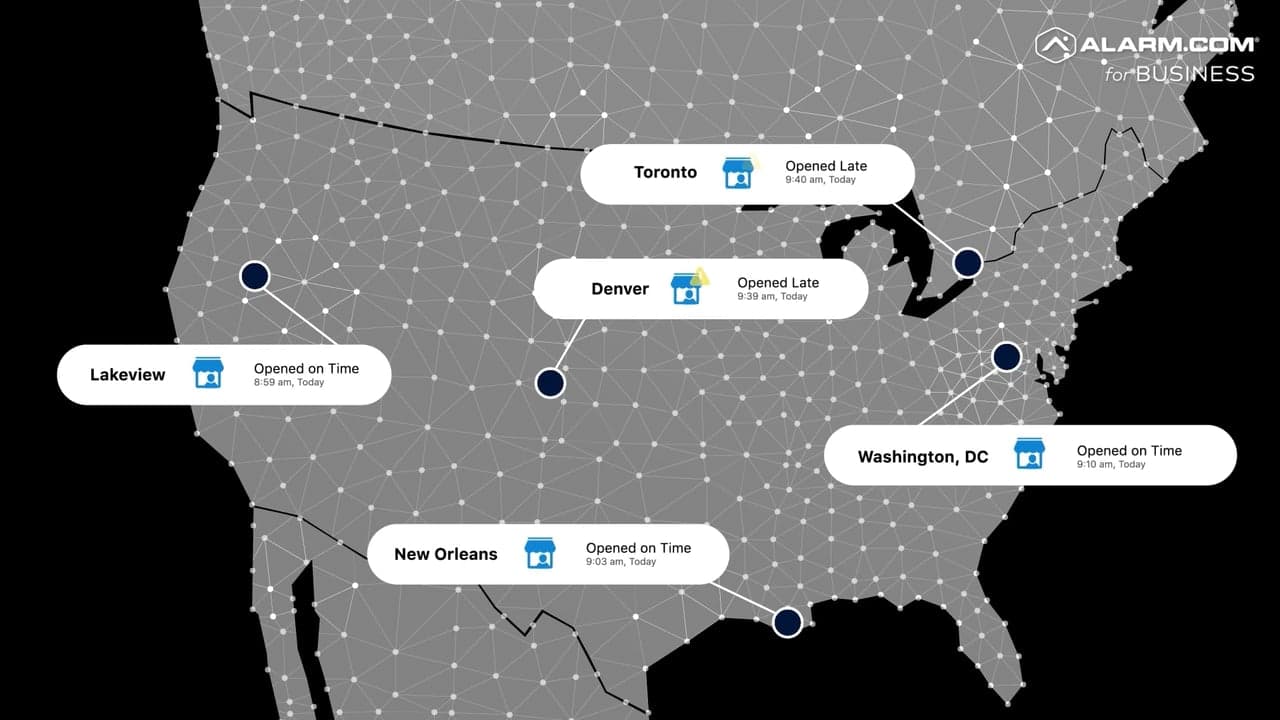 Most businesses cobble together separate systems for security, cameras, access control, and energy management—each with its own app, login, and learning curve. Alarm.com unifies everything into a single platform where your systems work together intelligently.